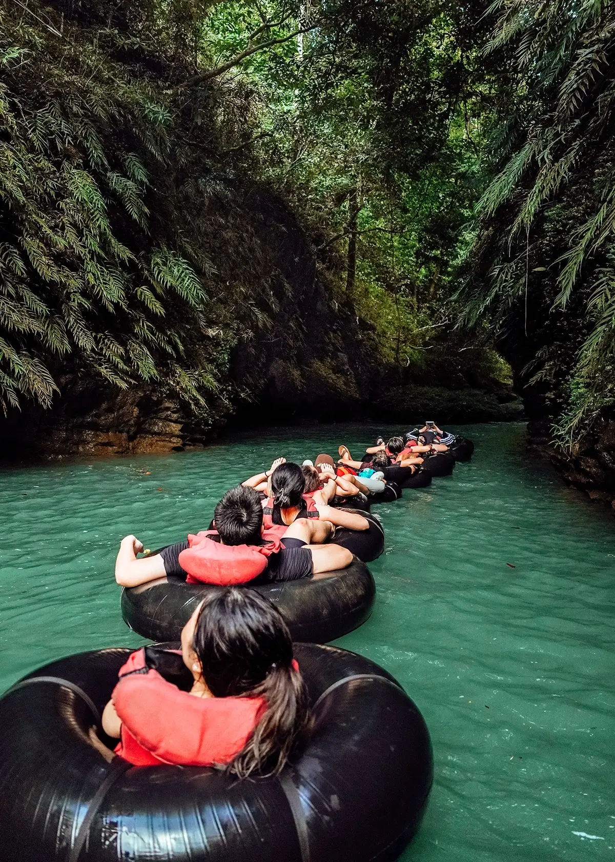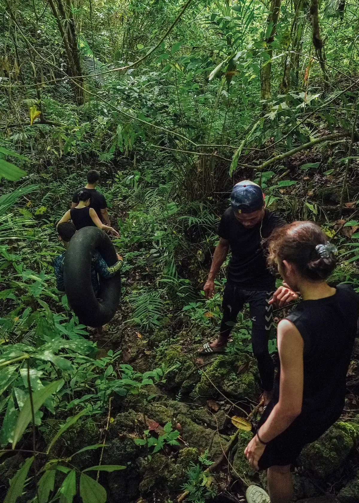 Short jungle trek before the tubing adventure begins.